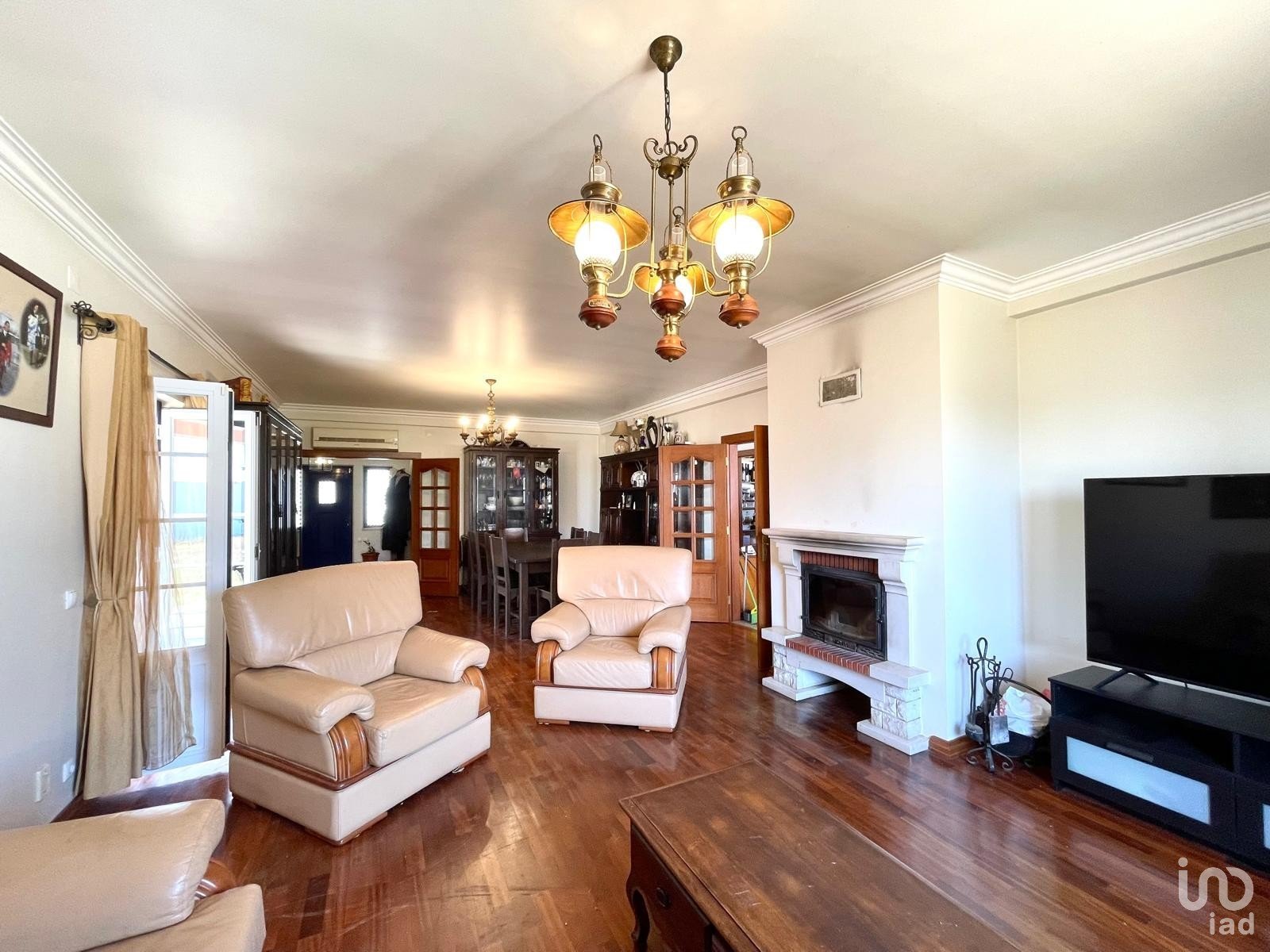 . Salon et salle à manger avec cheminée et climatisation qui se connecte harmonieusement avec la cuisine à travers une double porte spacieuse, créant un environnement parfait pour recevoir les amis et la famille. Cette pièce se prolonge également à l'extérieur, où un charmant porche vous invite à profiter de moments de détente en plein air, que ce soit pour un café matinal ou des repas tranquilles.