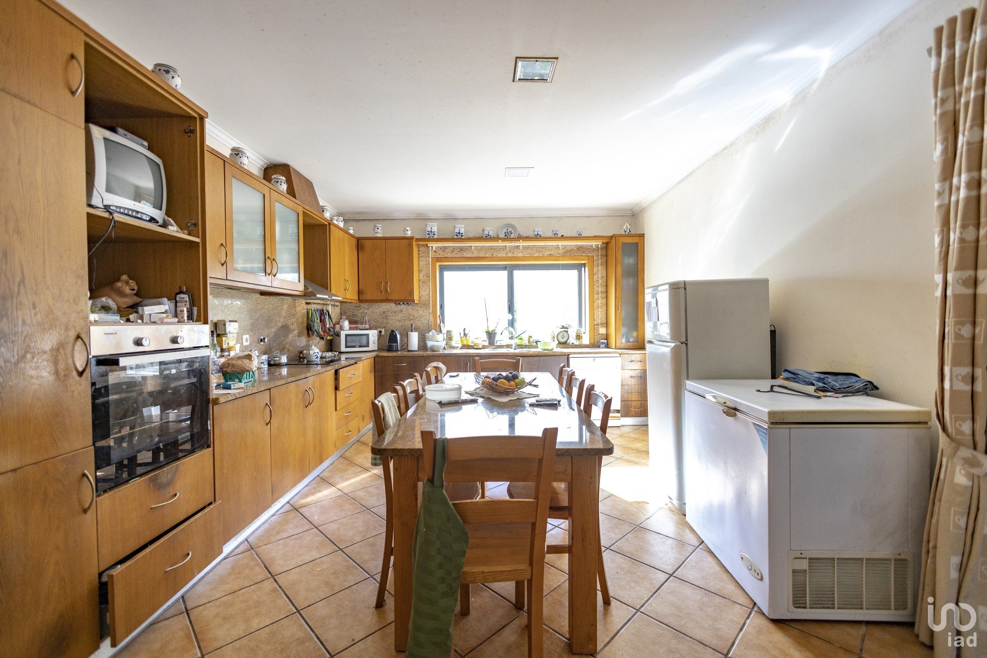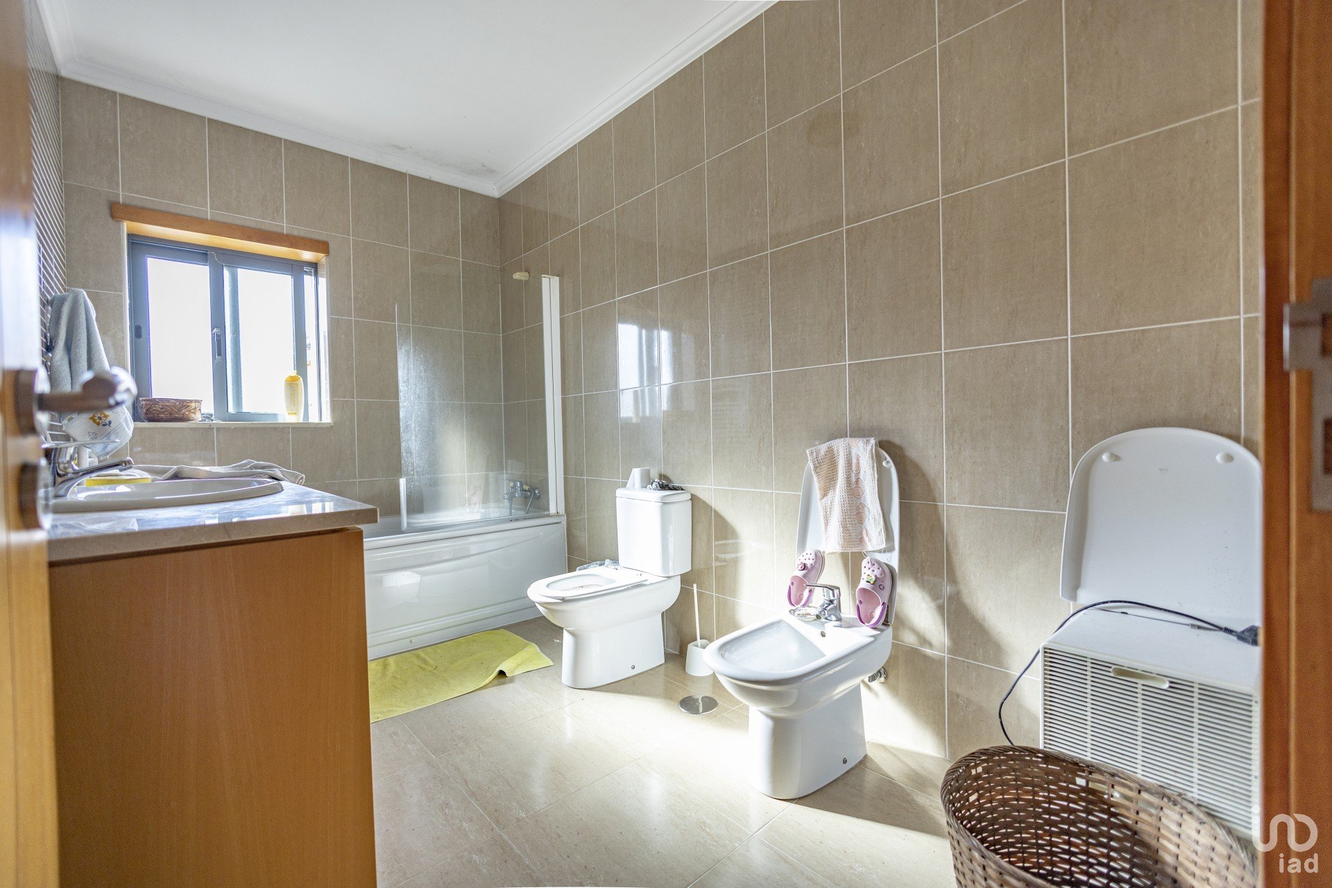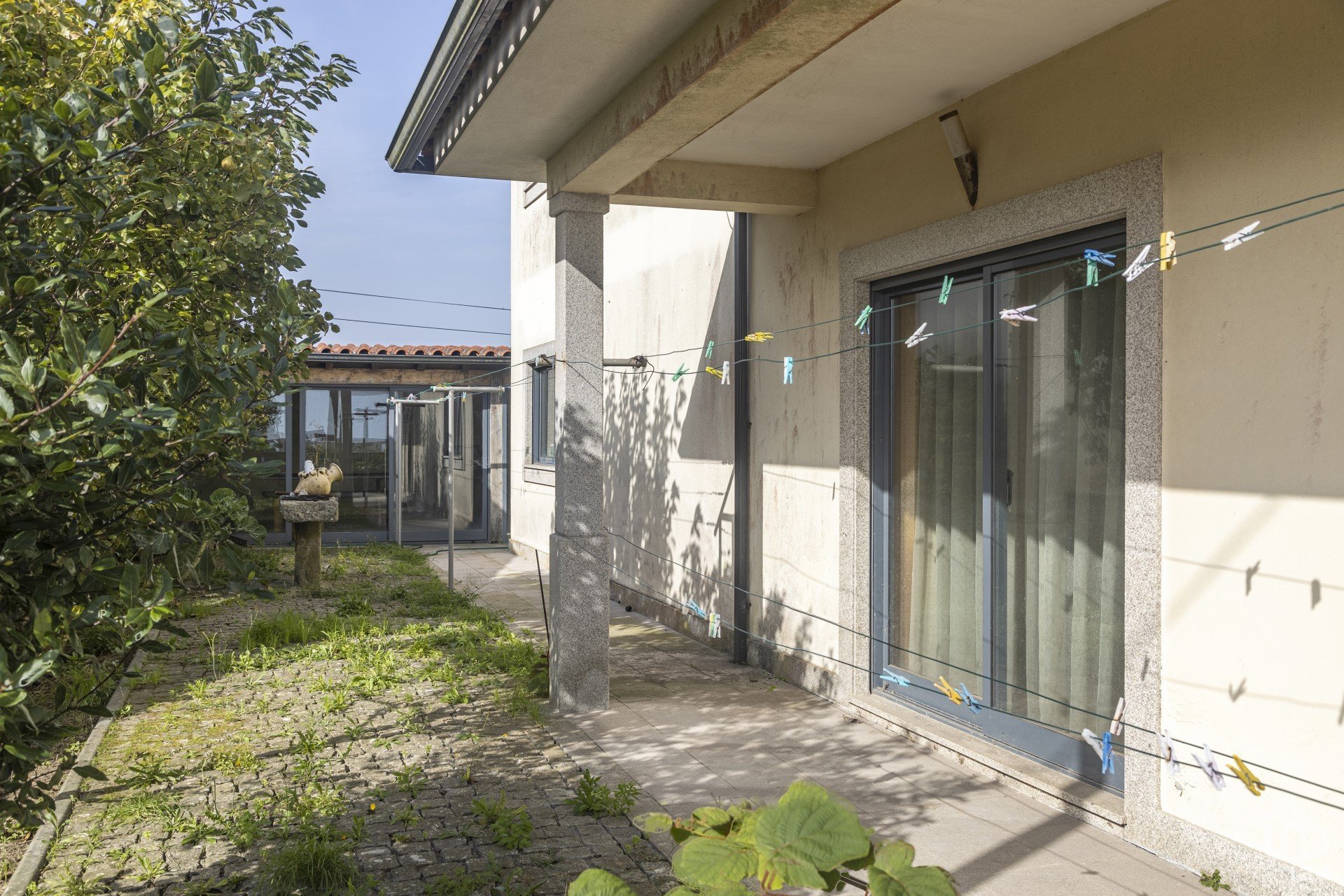 Equipada com roupeiros embutidos, persianas elétricas, vidros duplos, aquecimento central (radiadores), portões automáticos.