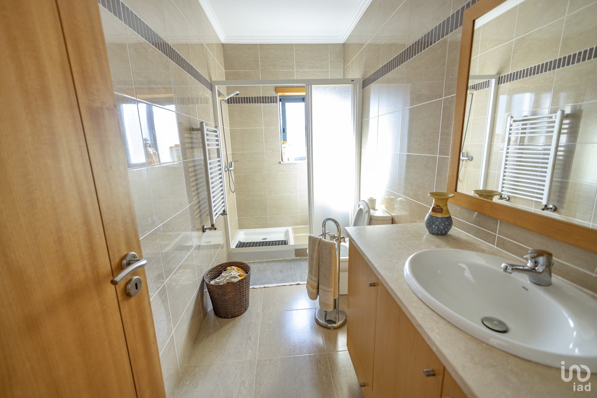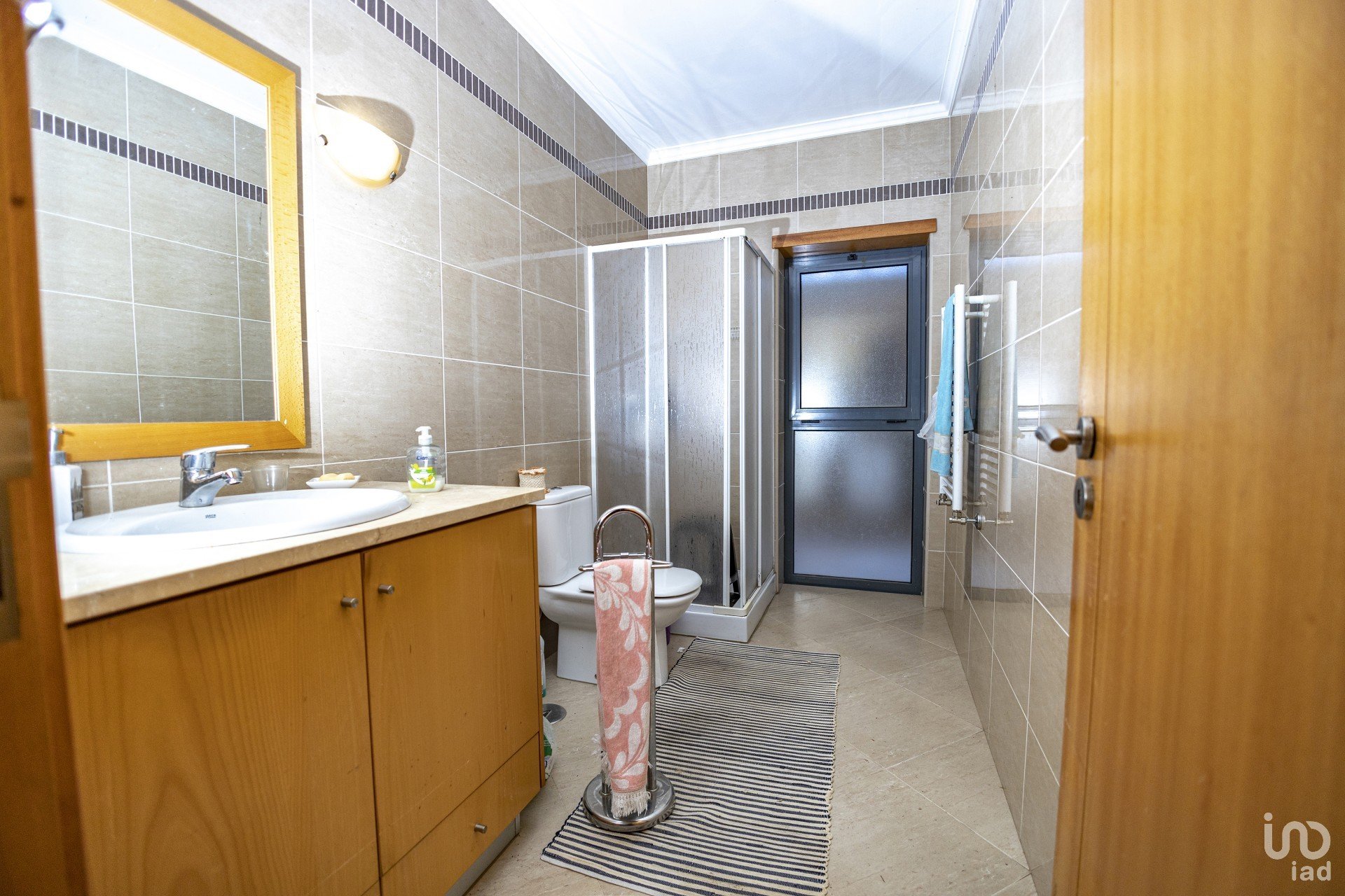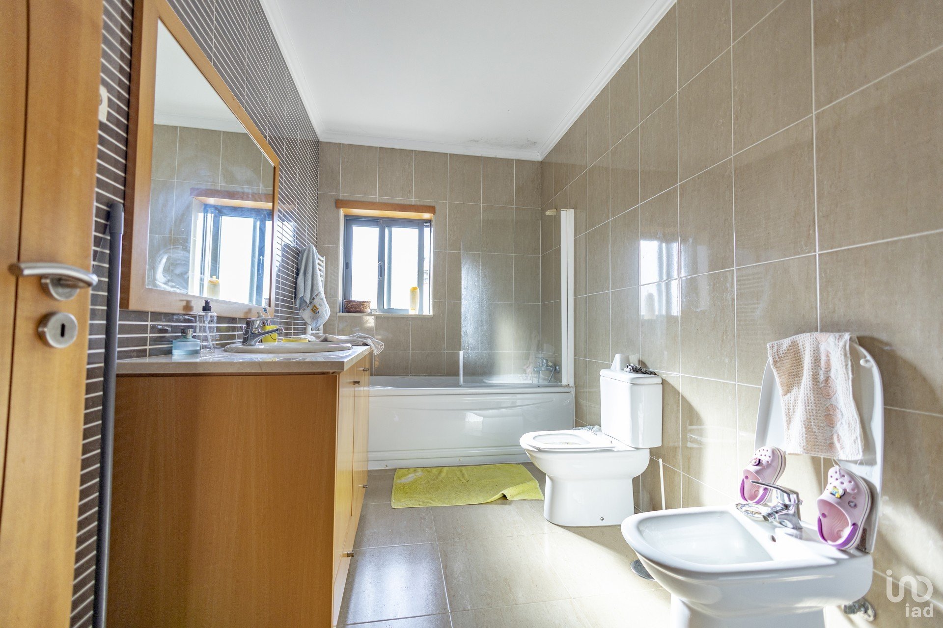 Equipada com roupeiros embutidos, persianas elétricas, vidros duplos, aquecimento central (radiadores), portões automáticos.