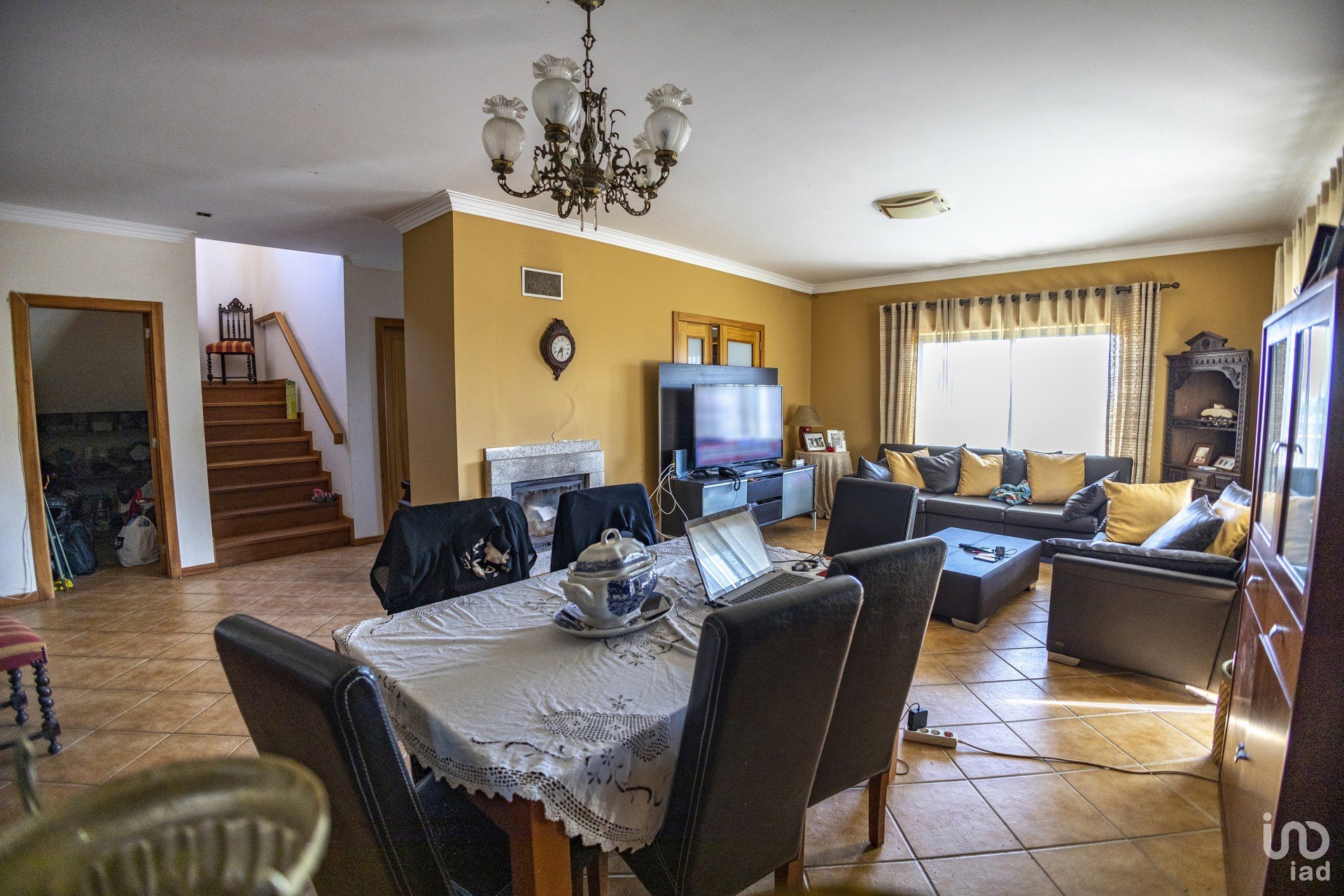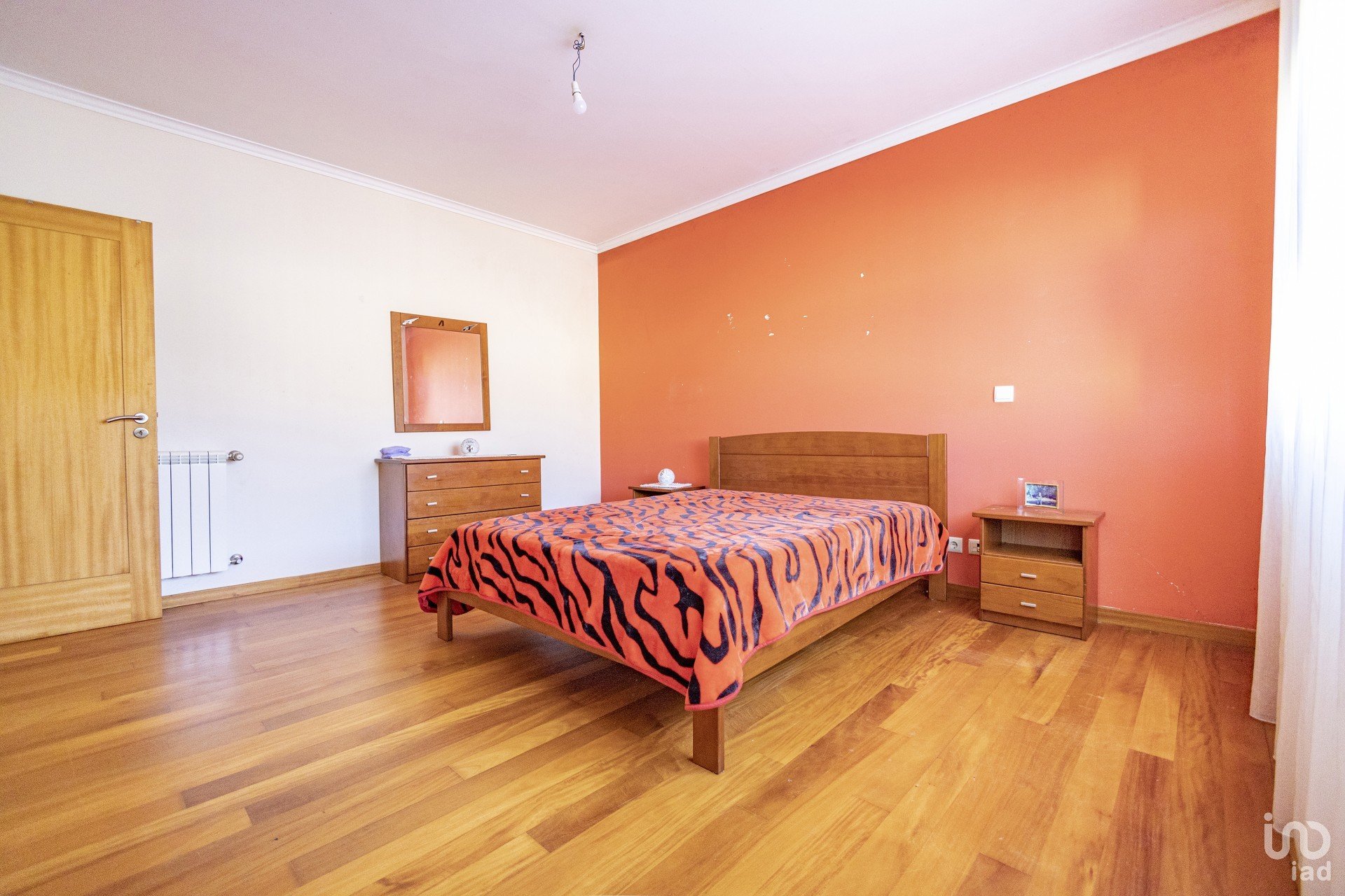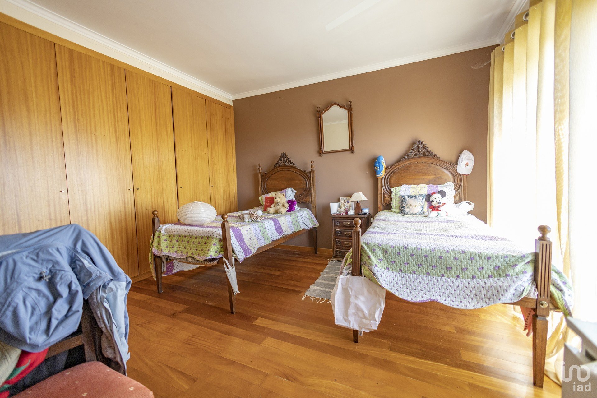 Distribuída por dois pisos, esta moradia é composta por cinco quartos, um no rés-do-chão e quatro no andar superior, sendo um deles suíte, cozinha ampla, despensa, lavandaria, churrasqueira e garagem.