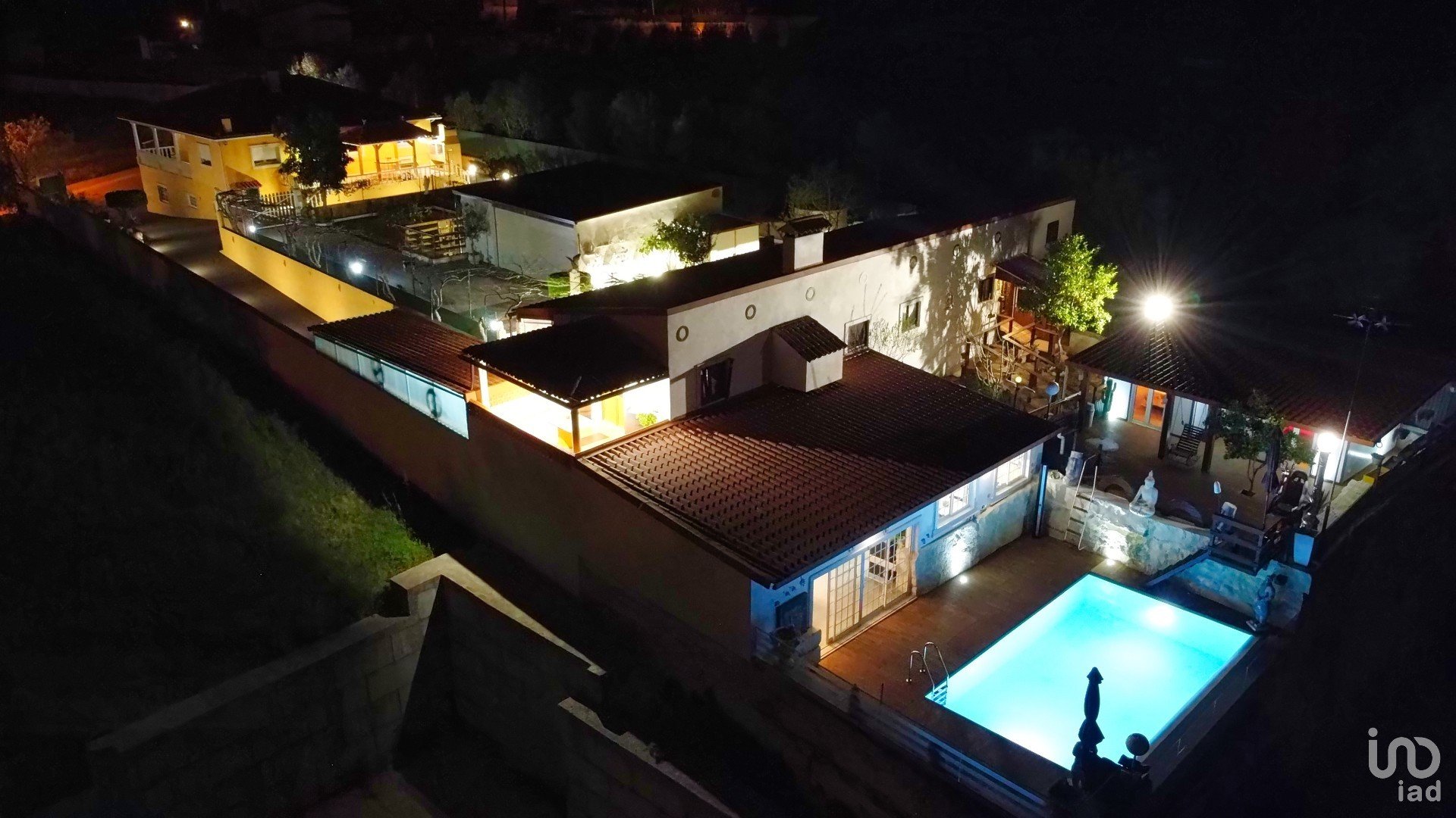 L'ensemble de l'espace extérieur de cette ferme est soigneusement organisé en zones à des fins différentes, avec une attention particulière aux détails tels que l'existence de nombreux parterres de fleurs, un potager, des arbres fruitiers, un puits, un arrosage automatique, des tables et des bancs en pierre, un barbecue, une piscine à débordement chauffée avec traitement au sel et de nombreuses sources lumineuses réparties dans toute la propriété, lui conférant une lueur nocturne magique et unique.