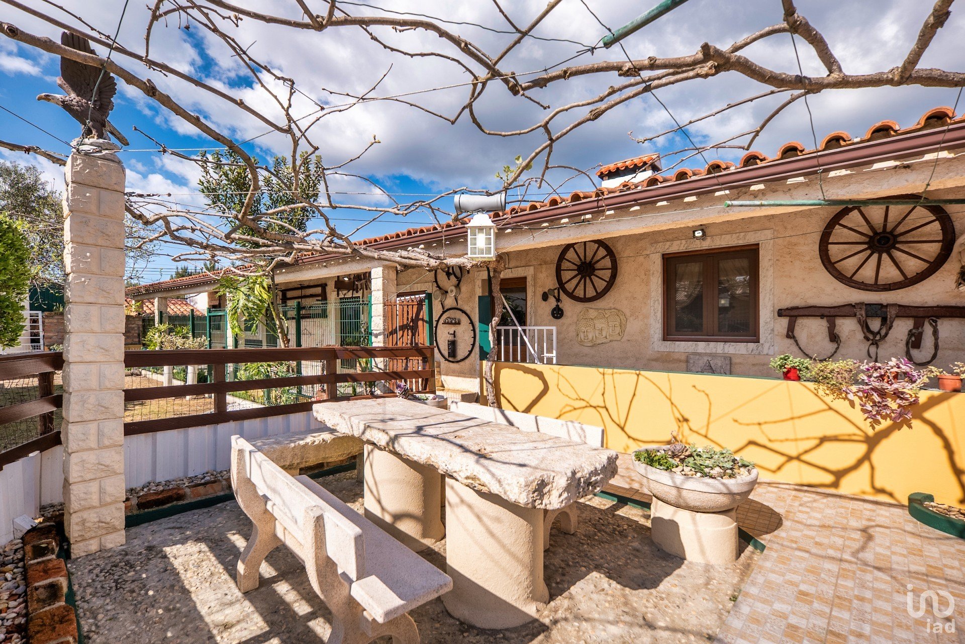 Entre ses murs, et après avoir été accueillis par un beau jardin avec des arbres fruitiers, nous trouvons une propriété dans laquelle rien n'a été laissé au hasard, avec la maison principale qui se distingue immédiatement, qui se dresse derrière ses imposants portails verts automatiques (cinq au total), avec quatre chambres, un salon et une cuisine spacieux et lumineux, un sous-sol pour le stockage, avec une deuxième cuisine et un garage. A l'extérieur, à l'arrière, se trouve un coin repas extérieur, soutenu par un barbecue pratique.