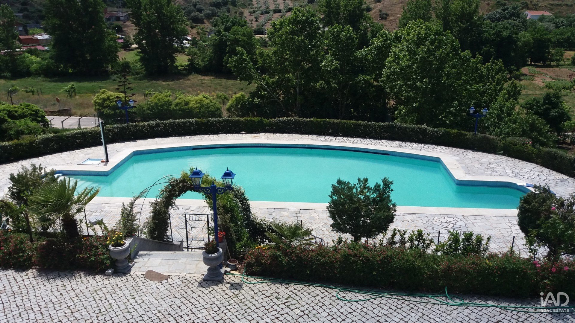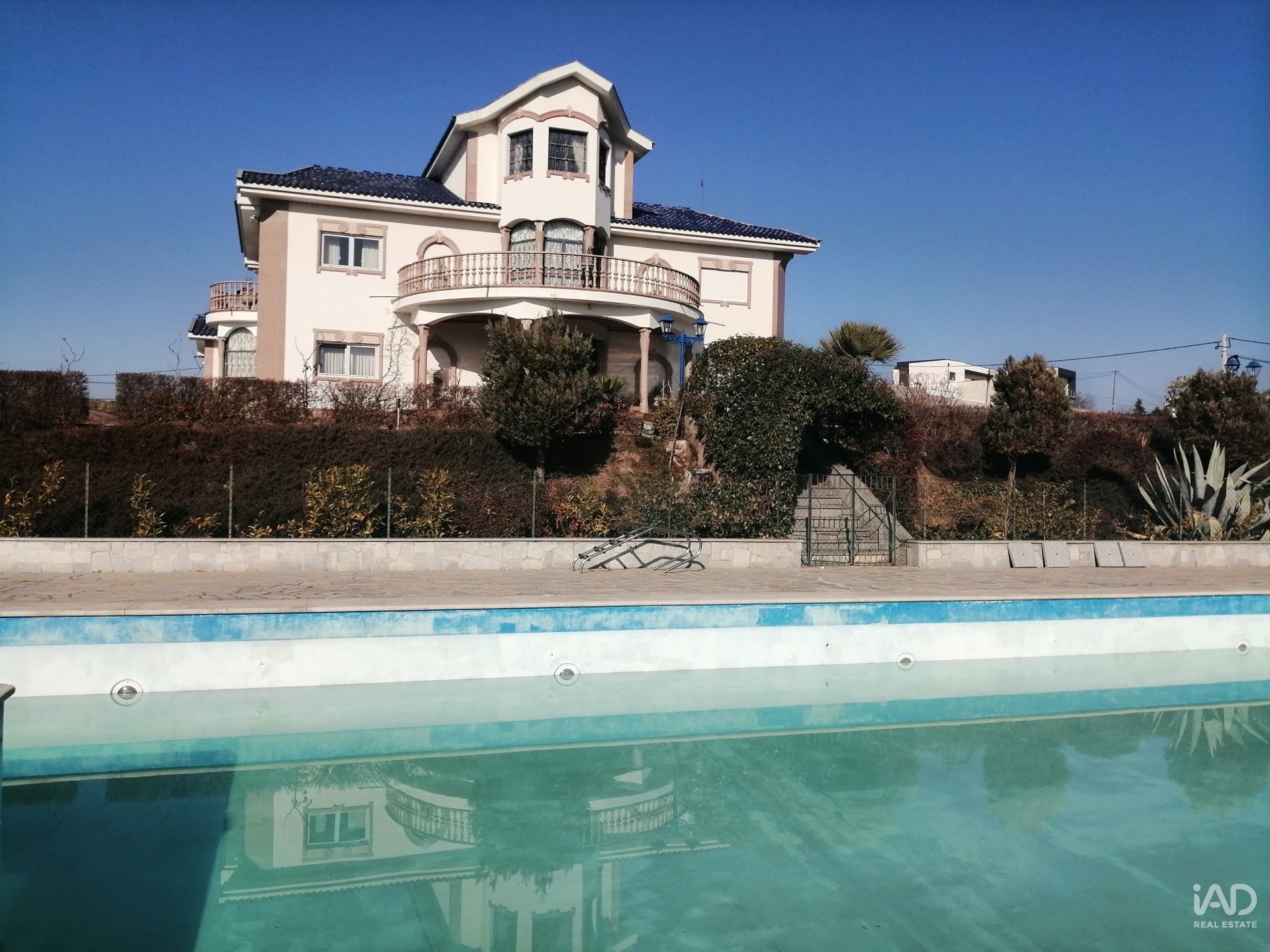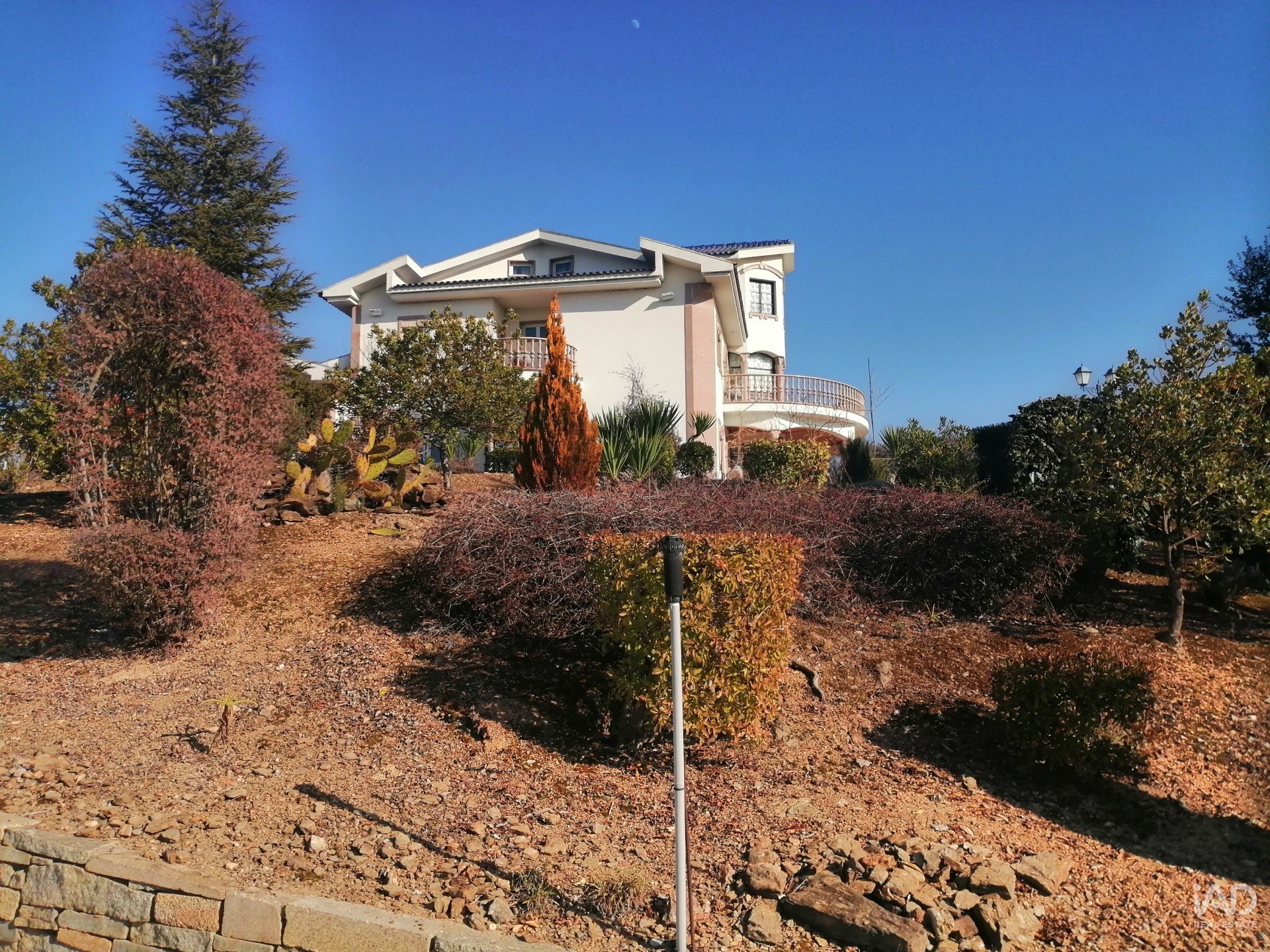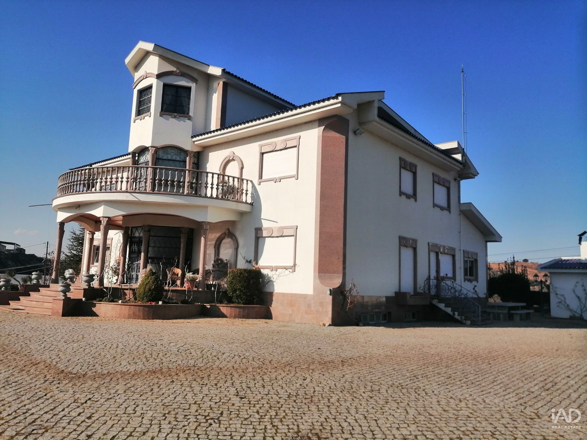 La villa a été achevée en 2000, type T9, 3 suites avec 4 étages desservis par des escaliers et un ascenseur, l'une avec terrasse et l'autre avec balcon, salle de jeux, salle commune de 60 m2, salon, salle à manger, cuisine équipée avec cheminée et garde-manger, buanderie, 8 salles de bains, dont une extérieure, garage pour 6 voitures.