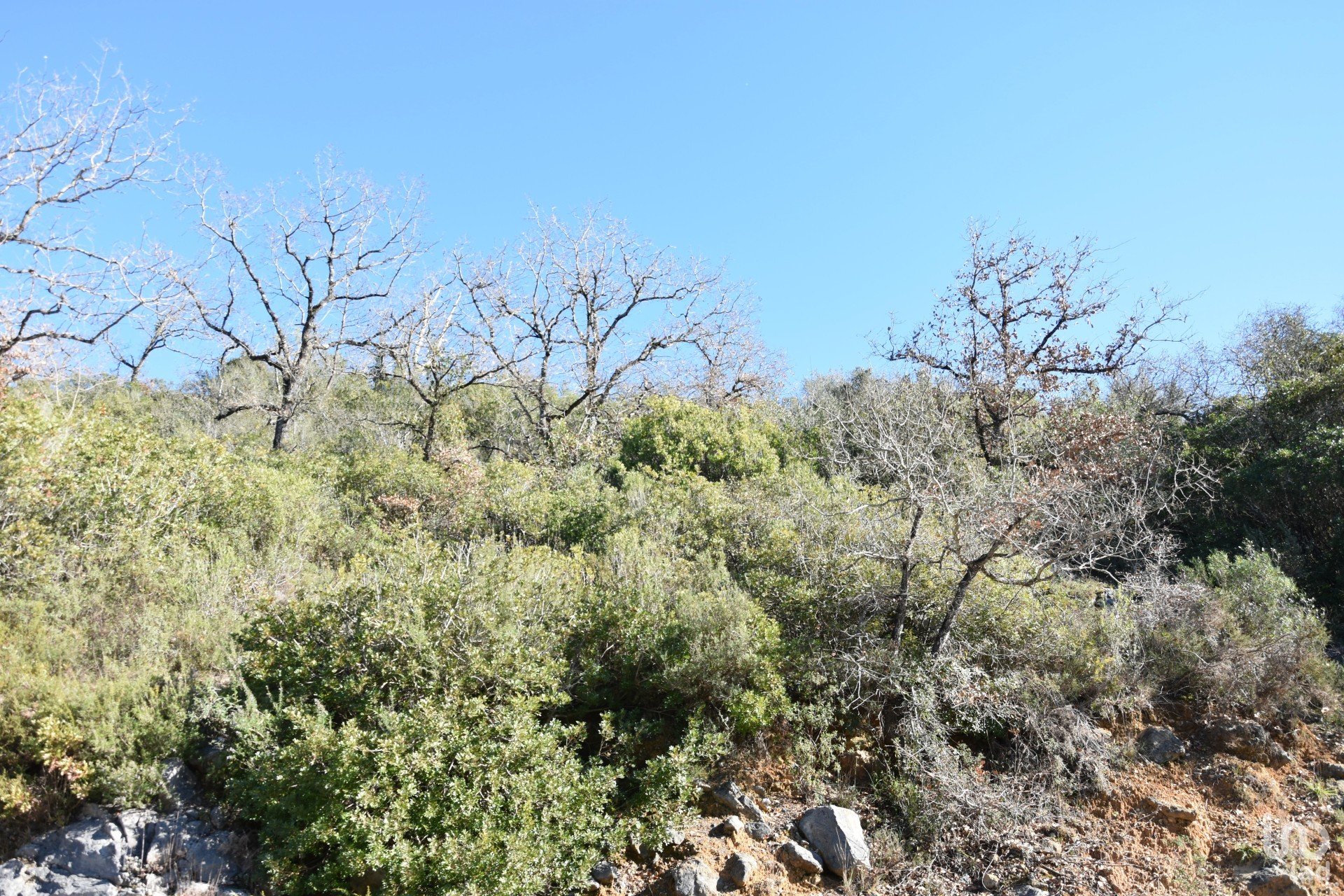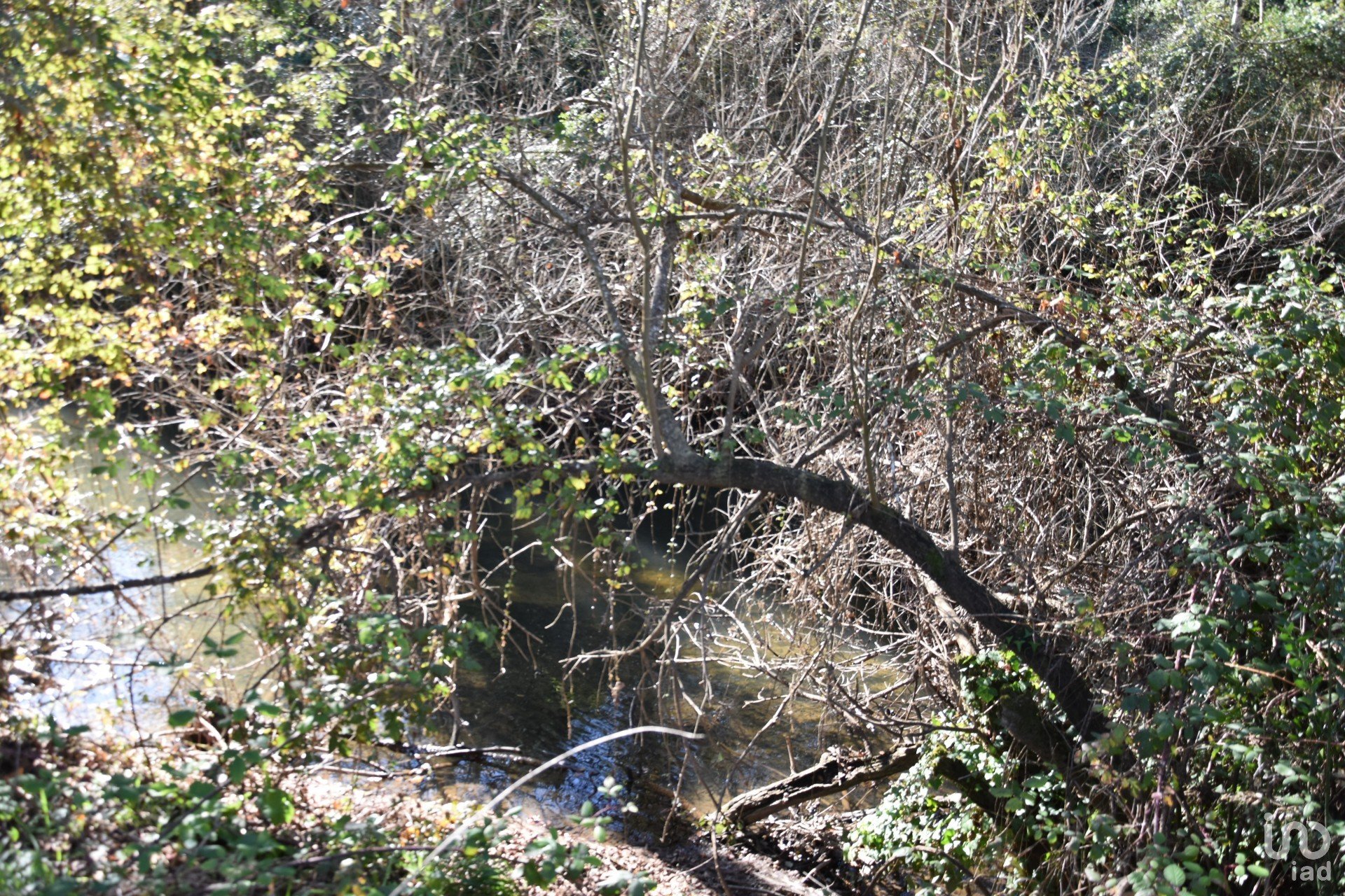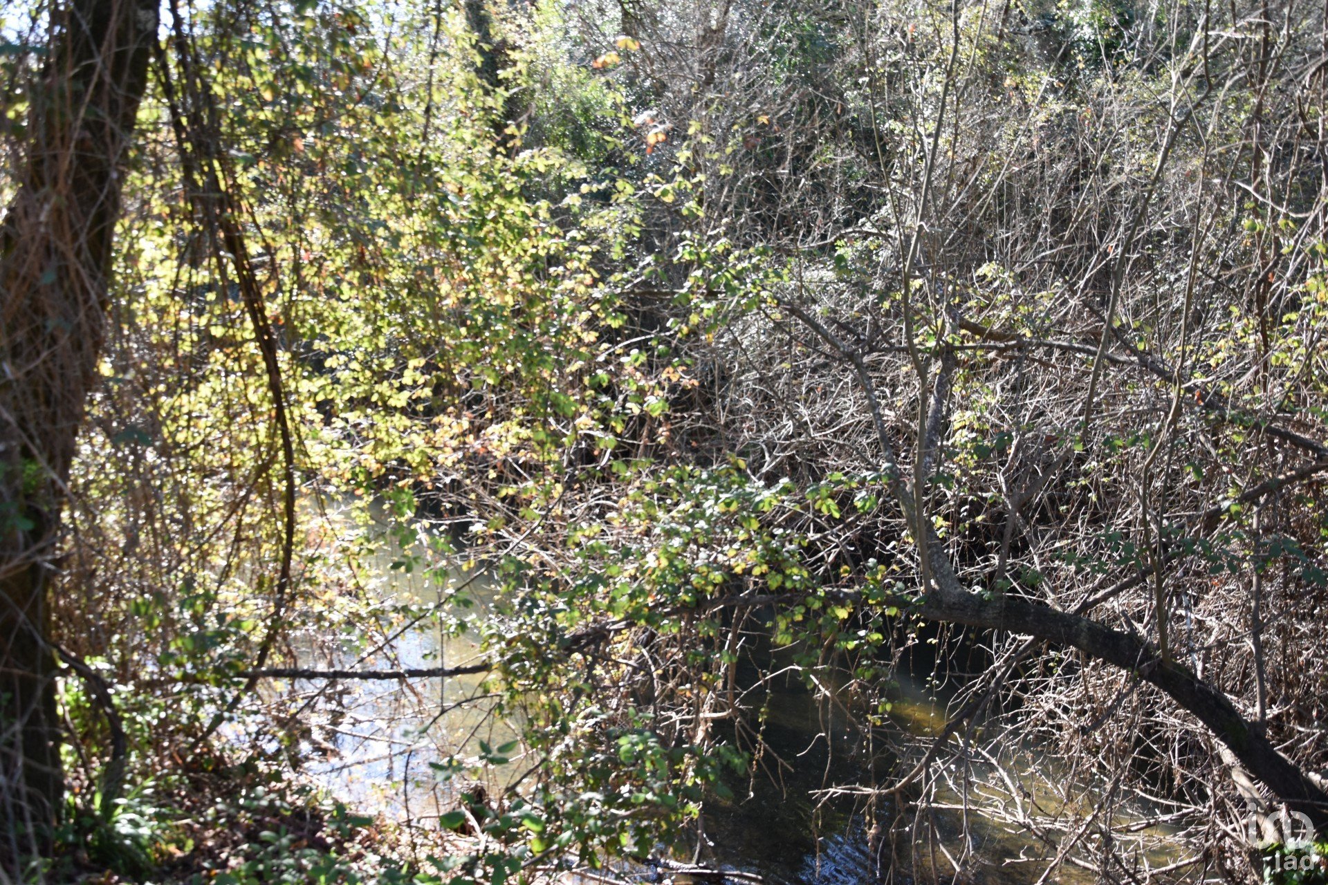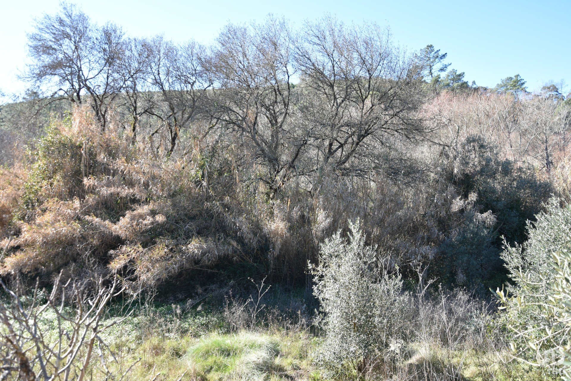 Terrain de cultures arables et de garrigue, en bordure du village, avec une rivière.