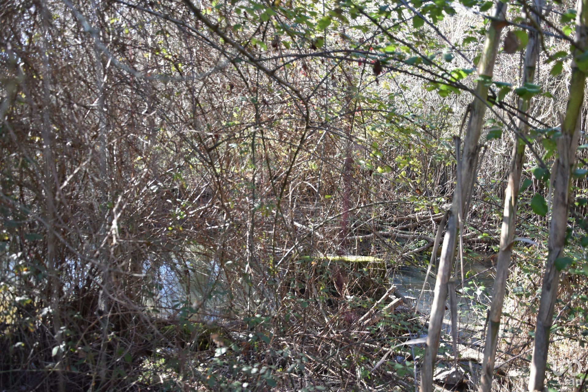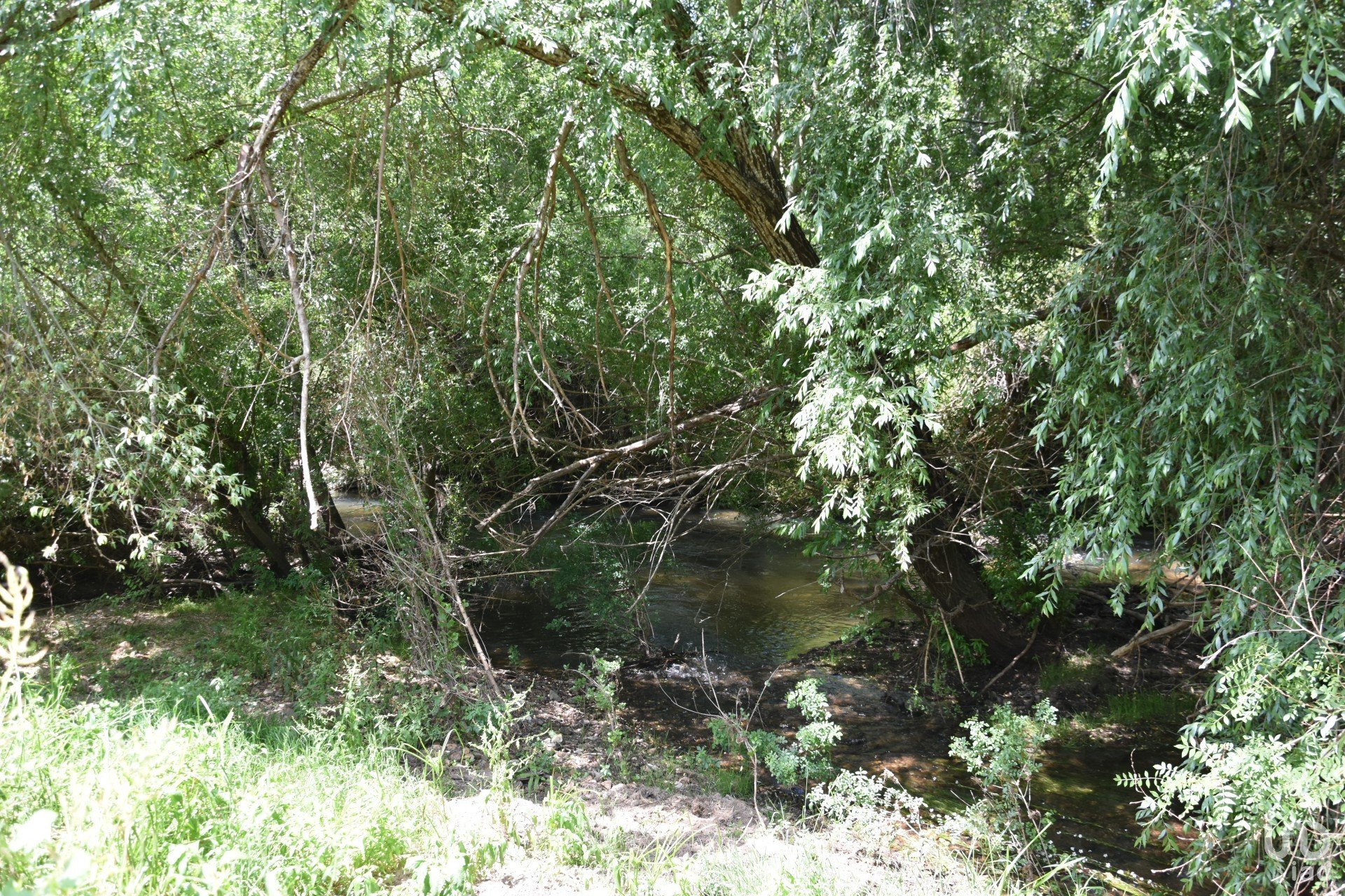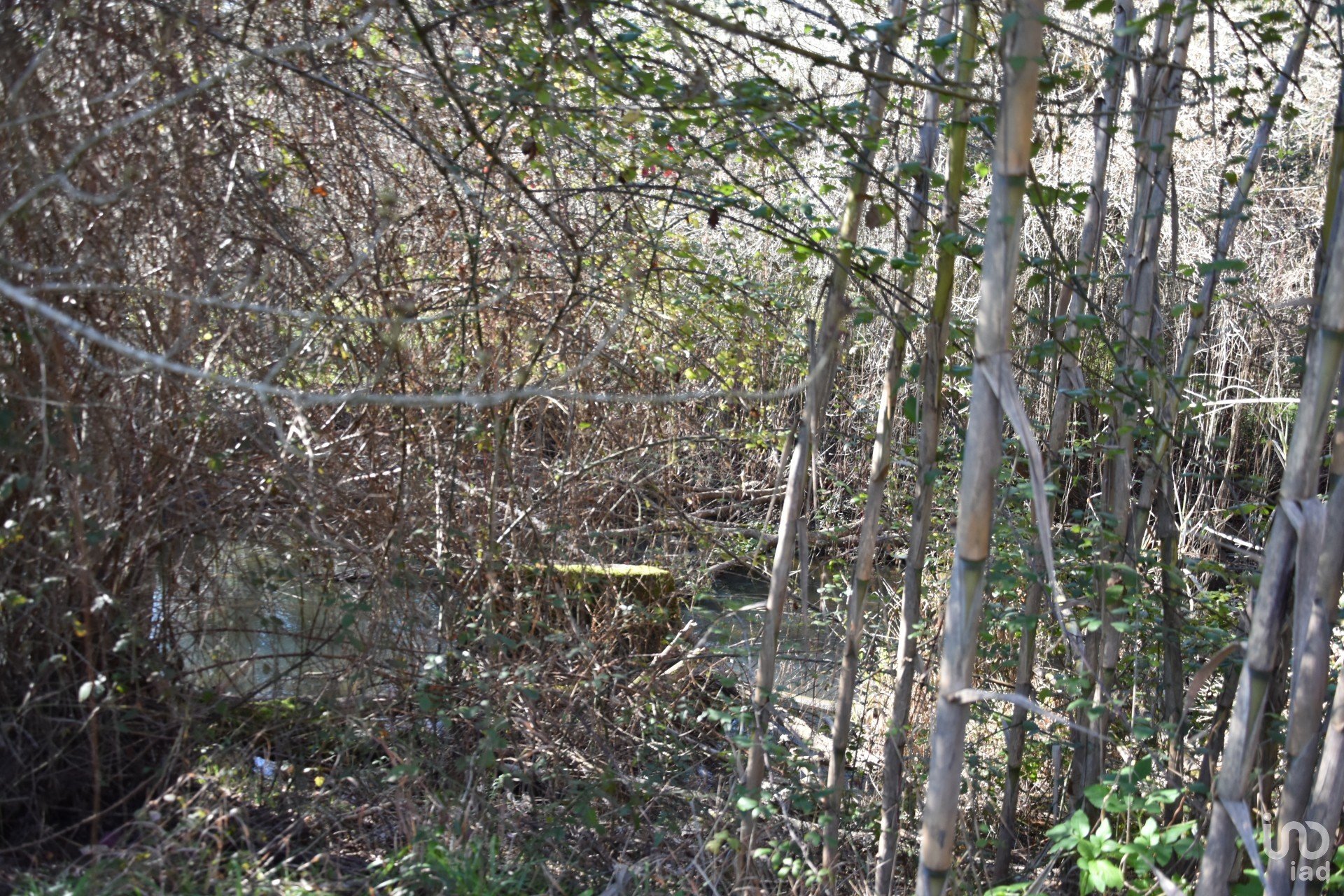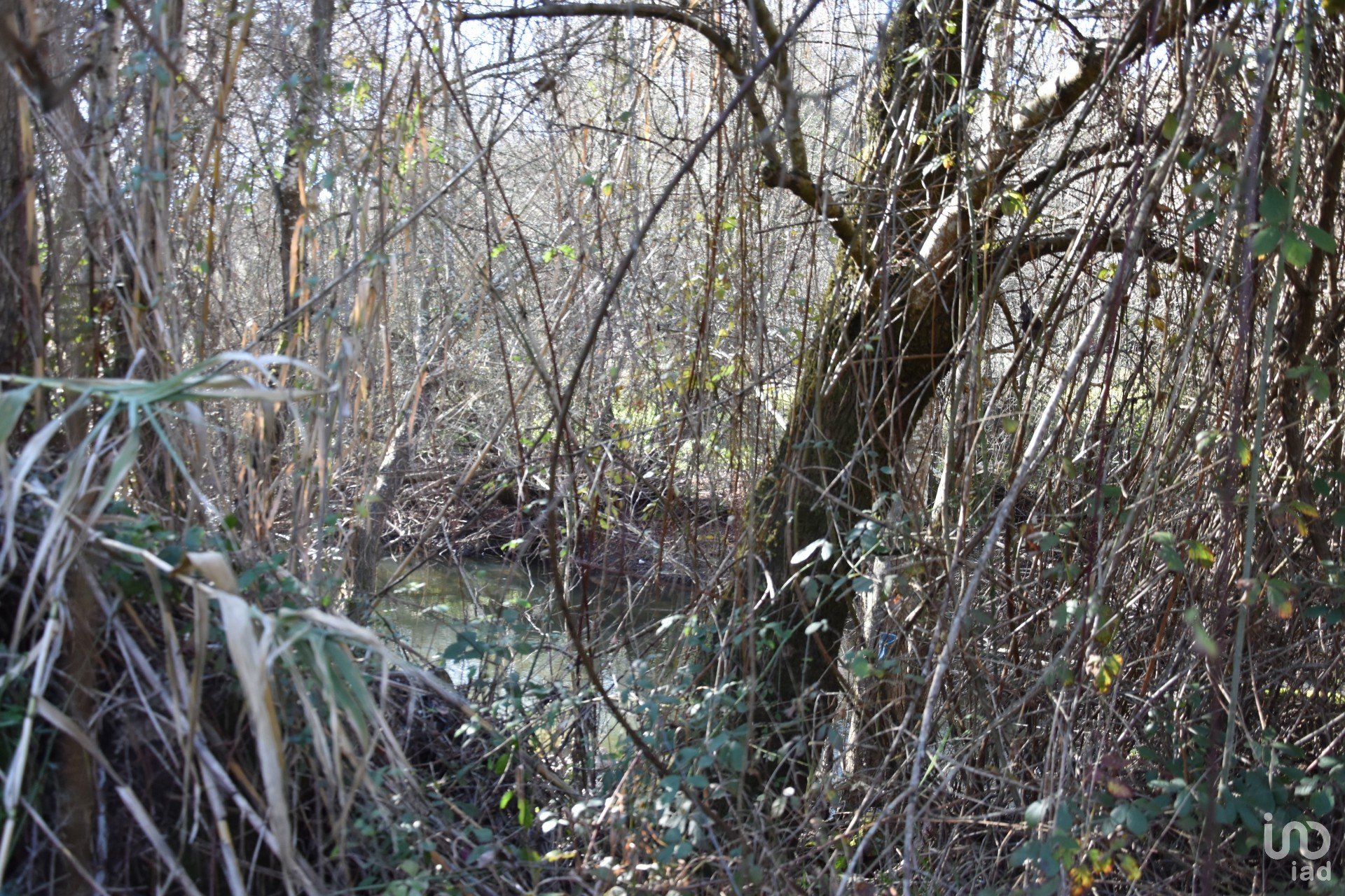 Terrain de cultures arables et de garrigue, en bordure du village, avec une rivière.